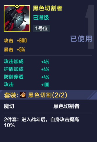 因为都是与护盾值相关,所以战地医生能够与星光恩典套装进行非常不错的搭配。与此同时,战地医生另一个被动是使用主动技能后,全体获得攻击百分比80%的护盾。而如果辅助选手再搭配黑色切割增加自身攻击的套装的话,就可以完全把这个黄金勋章的作用发挥出来。